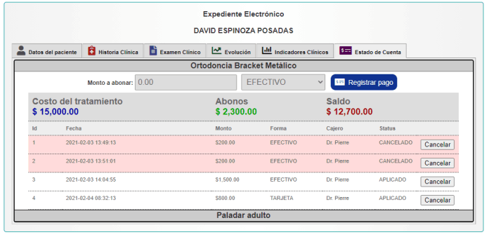 Consulta el estado de cuenta de tus pacientes y observa el histórico de pagos efectuados.