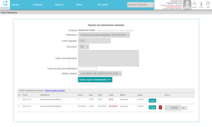 Registra tratamientos desde tu catalogo con precios predefinidos y editables al momento de la asignación.