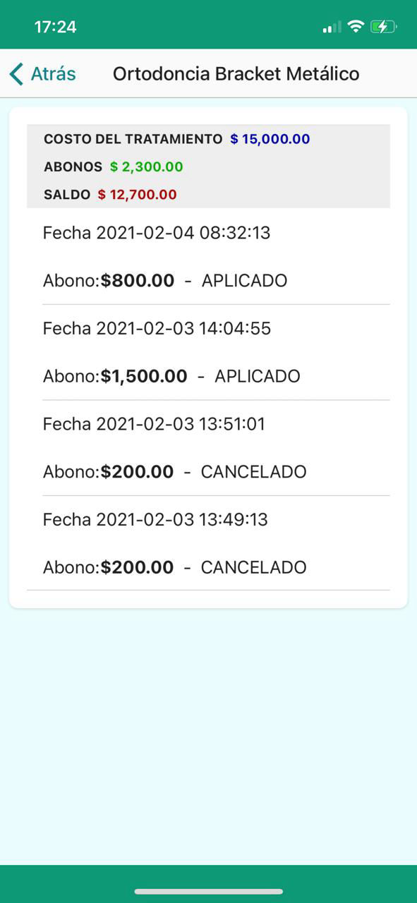 Podrás ver el detalle de pagos de cada tratamiento, en la palma de tu mano.